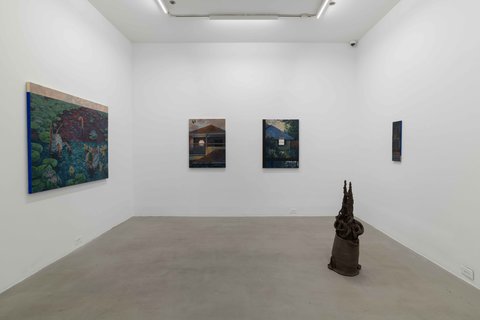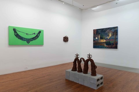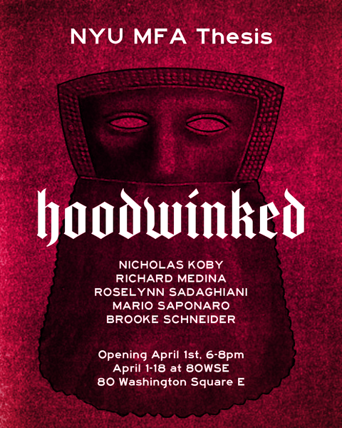 Hoodwinked brings together five NYU MFA candidates in a game of barriers, overgrowth, decoys, fronts, and obstacles. Confronting our desperate times, each artist turns concealment into a generative act.