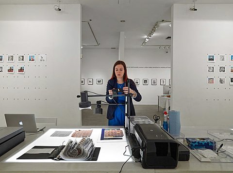 The previously unknown bodies of work sampled in the exhibition are indicative of The Bob Mizer Foundation’s continuing effort to preserve the entirety of the artist’s life and work. In addition to the exhibition’s presentation of printed photographs, a large portion of the Mizer estate—which consists of what is estimated to be nearly two million negatives and slides, three thousand films, and thousands of objects—will be shipped to NYC and installed at 80WSE. The galleries contained large worktables with light boxes and archiving equipment and throughout each day of the exhibition, students from the NYU Steinhardt Department of Art and Art Professions worked on processing the archive for preservation; scanning negatives and returning them to Mizer’s original order.