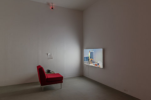 Sometimes 80 Washington Square East hires me to help out when the art they’ll be showing has complicated video requirements. I do this kind of work for other galleries too and I also produce videos. This exhibition is made up of six videos I worked on. Half of the pieces here are artworks and the other half are documentations of artworks. While these documents (which begin with a white title card) are not artworks themselves, they do represent artworks and convey an experience of that work. In a similar way, the art on view here, which is not mine, represents my occupation as an artist and conveys an experience of my work. Making work in this way is something that I’ve been pursuing a little over a year. To a greater extent than in my previous shows, this exhibition is a structured viewing of the artworks. The proposition is that you are in an exhibition by Jason Hirata.